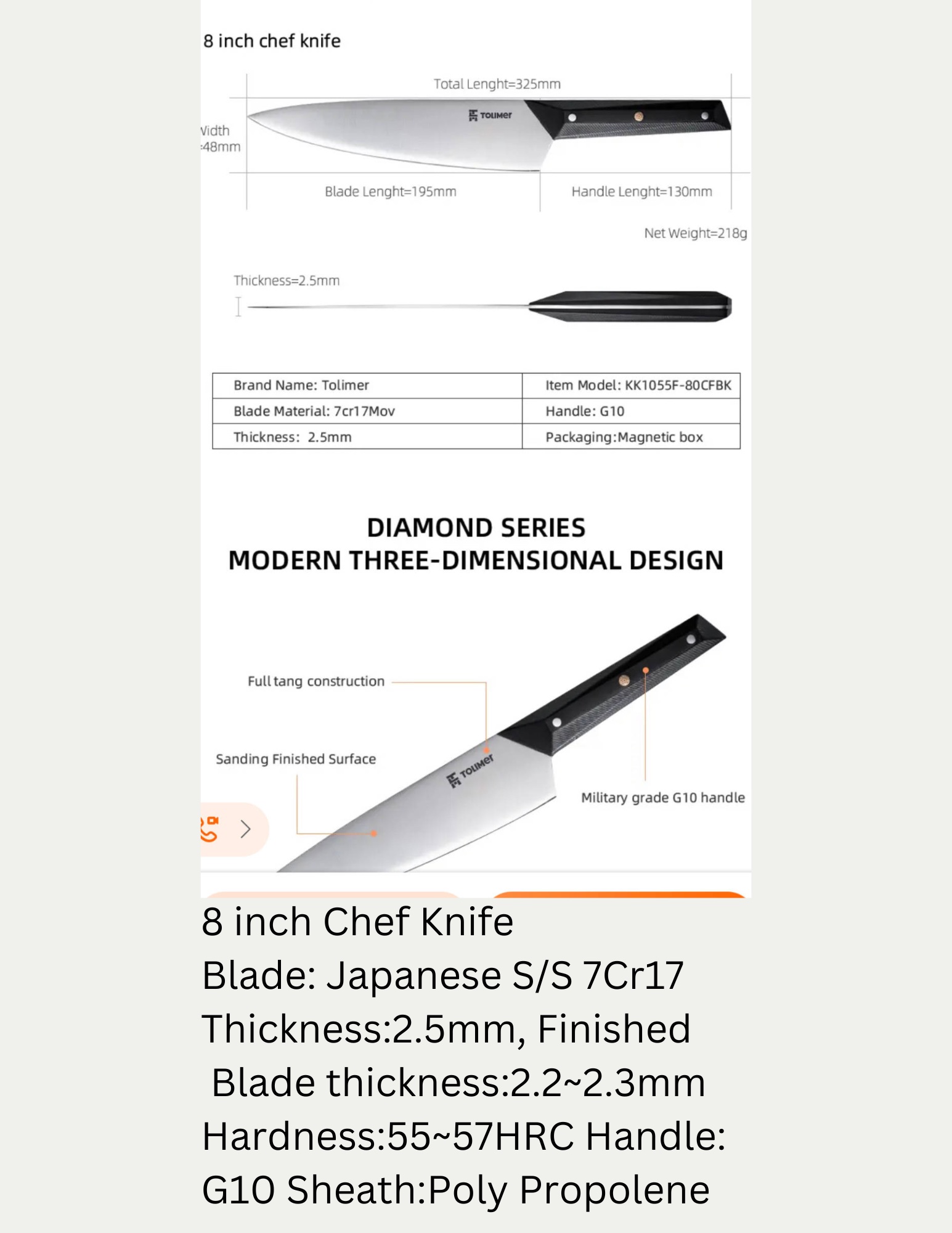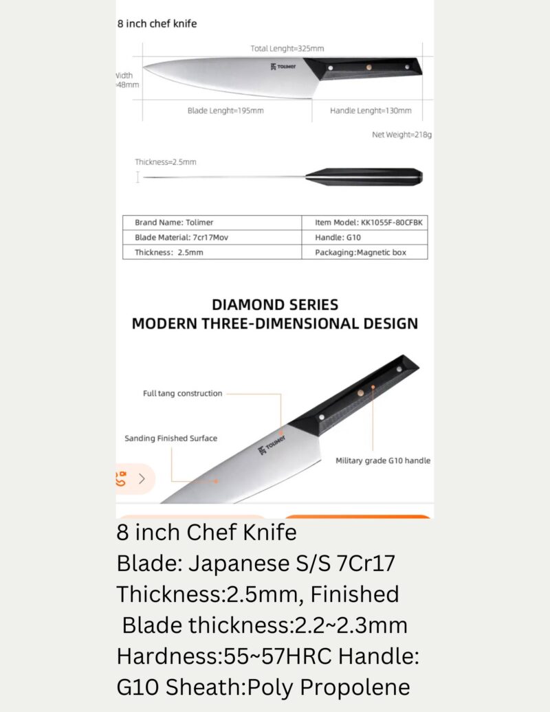 January 30, 20248″ Chef Knife Japanese Steel Maganetic lid storage box and edge protecting shield