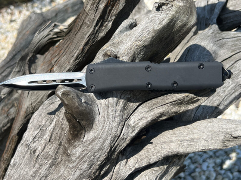 Normal EDC knives are cumbersome to open and often require two hands to operate, but with an OTF switchblade, a smooth blade ejection is just one switch away. This automatic knife is spring-assisted and uses a double action press release button, allowing the blade to eject out the front with a slide switch, and return to its resting place via the same switch using just one hand to operate.